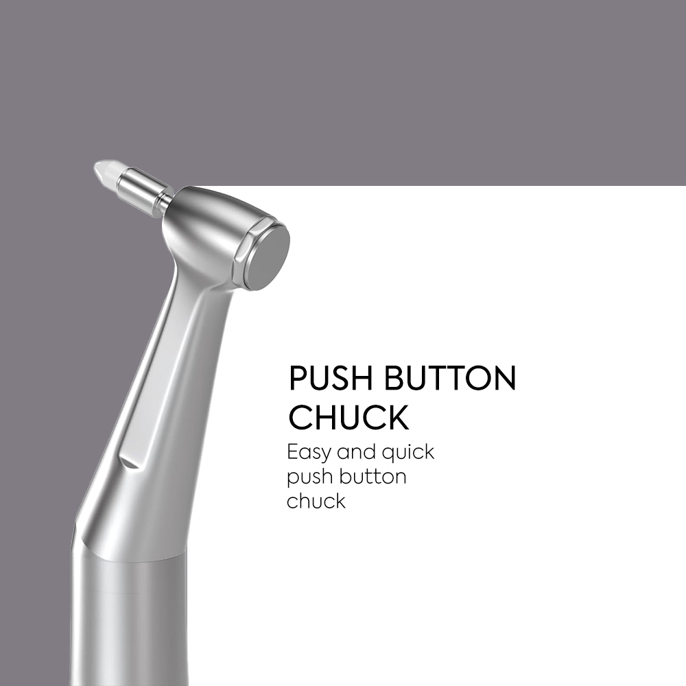 Precise, push-button control, slow-speed contra angle handpiece for accurate procedures
